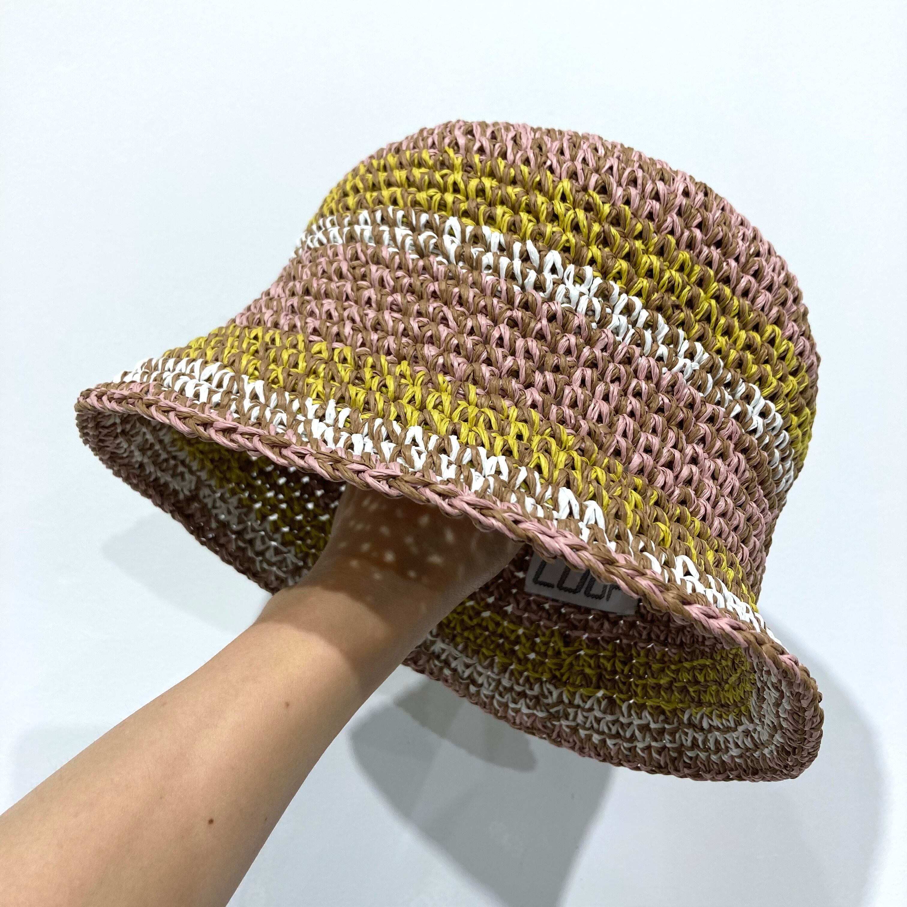 日本製の笹和紙素材の糸を使って編んだマルチカラーバケットハット。